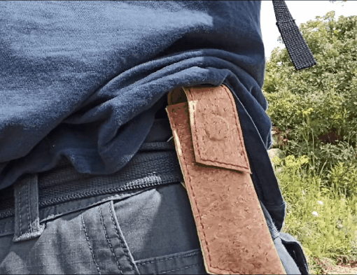 Il est possible de compléter votre achat, par un superbe et pratique étui ceinture. Fabriqué 100% à la main, il est composé de liège doublé de simili cuir beige, ce qui lui procure une certaine résistance et élégance.